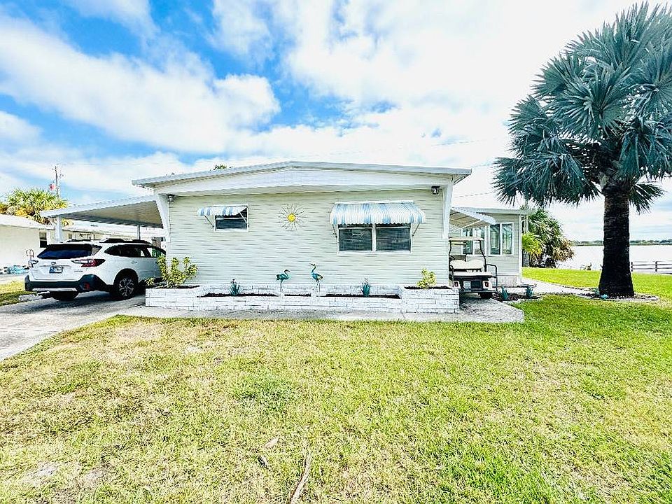 Lakefront Beauty in Orange Manor East - 3-Bedroom, 2.5-Bath Home on Lake Grosse in Winter Haven Homes in the Orange Manor East, a 55+ lake community, are on lot leased land in Winter Haven, Florida. Owning the home, but not the land, you pay a monthly lot rent of $700.00 which gives you and your guest access to the amenities of the community plus water. Experience lakeside living in style! This stunning home, located in the highly desirable Orange Manor East 55+ community in Winter Haven, Florida, sits directly on Lake Grosse and offers everything you've been dreaming of - including a large private backyard, your own private dock, and breathtaking sunset views. This one-of-a-kind home perfectly blends sweet vintage touches with the comfort and convenience of modern upgrades. Whether you're sipping your morning coffee on the dock, casting a fishing line, or unwinding in your four-season lakefront lanai with a glass of wine, you'll love the peaceful Florida lifestyle this home provides. Home Highlights: 3 Bedrooms | 2.5 Bathrooms | 1,560 Sq. Ft. Bright and cheerful vintage eat-in kitchen with charming retro style Unique circular bathroom design for privacy and comfort Beautiful laminate flooring throughout; tile in bathrooms Metal roof with roof-over for added protection and energy efficiency New A/C (2017) and recently passed insurance inspection All new ductwork and insulation under the home Separate laundry room conveniently located near bedrooms Lake-facing four-season lanai with new insulation and double-pane windows & doors New dock and walkway constructed with Forever Wood for low maintenance and long life New tiedowns (2009) for added security Extra-large shed with double-door entry-perfect for golf cart storage (golf cart negotiable!) Mostly furnished-just bring your personal touches! (Excludes artwork, dining room set & hutch, TVs, Green Egg, and tools) Homes in Orange Manor East are on lot-leased land, meaning you own the home but lease the lot. Your monthly lot rent gives you and your guests access to all the community's amenities, including a clubhouse, heated pool, shuffleboard, social activities, and the friendly atmosphere that makes Orange Manor East one of Winter Haven's favorite 55+ communities. Don't miss this rare lakefront opportunity! Call Bette to schedule your private tour and start living your best life! Orange Manor East; a 55+ Active Adult Community situated on Lake Gross, perfect for fishing off the community dock or launching your boat and watching the sunset! Such a beautiful backdrop for relaxing on the water or the water's edge. Boat slips and fishing for largemouth bass, bluegill and crappie is the perfect way to spend your day. This community offers a clubhouse, shuffleboard, bingo, community planned events, gatherings, and a full calendar of events to enjoy! Situated in a country atmosphere in Central Florida, yet close to shopping, restaurants, medical and many golf courses. Just minutes away is LEGOLAND. Historic Bok Tower is just a short drive and you are within an hour to Disney and Orlando attractions. Don't forget about the beaches! Centrally located, you can drive to either coast for a day at the beach. All prospective residents must be approved by community management prior to purchasing a home. All listing information is deemed reliable but not guaranteed and should be independently verified through personal inspection and by appropriate professionals. This home is sold "as is." Accuracy of the information and the condition of the property are not warranted or guaranteed. The buyer is responsible for verifying all current lot rent, fees, and pass-on costs directly with the community or park management. The listing agent is not responsible for quoting or confirming these fees. Third party financing options may be available. Ask your Agent for more details.