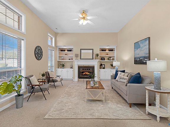 - Features: Built-in Features, Carpet, Ceiling Fan(s), Fireplace, Sitting Area, Window Cov