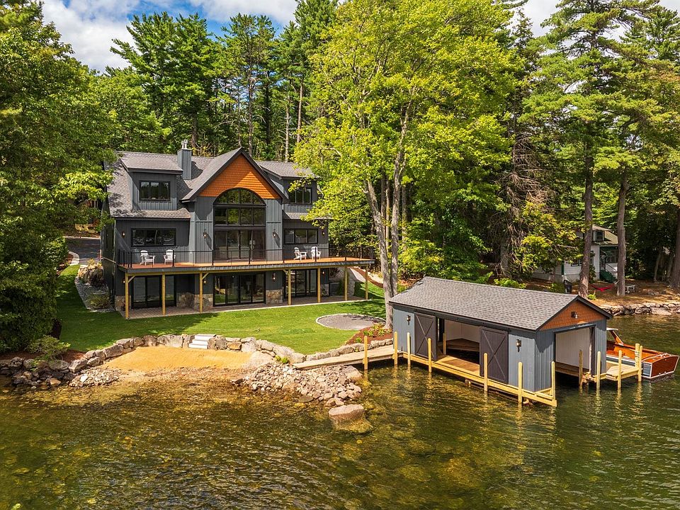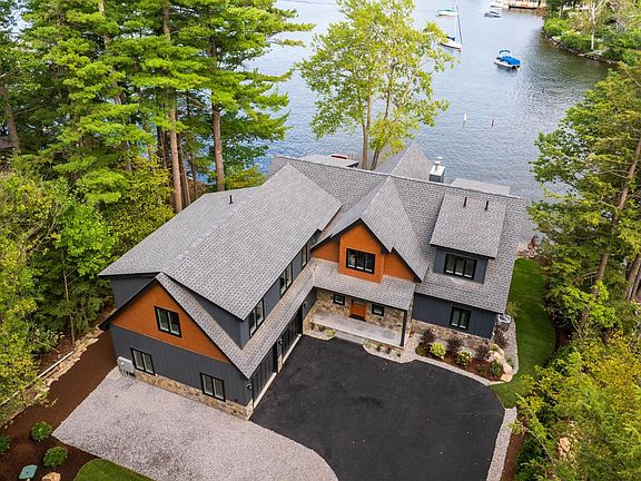NEW CONSTRUCTION on LAKE WINNIPESAUKEE with sweeping views looking out over Smith Cove and the Broads beyond! Thoughtfully designed and custom-built to check all the boxes - 6 bedrooms to include 5 king suites (one of which is a first-floor primary) and a massive bunk room! There are 5 full and 2 half baths, along with approx 5,165sqft of elevated living spaces! The kitchen showcases custom cabinetry, quartz countertops, Sub-Zero and Wolf appliances, and panoramic lake views—flowing seamlessly into the dramatic two-story great room where floor-to-ceiling windows frame the water, and a soaring stone fireplace creates a warm and inviting focal point. Additional highlights include a walkout lower-level with a guest suite, private office, stylish bar and wine cellar! Enjoy two laundry rooms, large mudroom, and an oversized garage prepped for heat! Only premium materials were utilized- Marvin windows, Everlast and cedar siding, Boston blend stone, custom doors, high efficiency systems, spray foam insulation, and designer-selected fixtures. Enjoy 1,500sqft of decking, porch and patio, a firepit area, extra parking and grassy areas for the kids! A beautiful beach and a no wake zone ensure safe swimming, kayaking and paddle boarding! The boathouse offers docking in and out for up to three boats, oversized barn doors on three sides, and a combo of nickel gap and pine finishes inside! LOCATION- 5 minutes to the Pavillion, 20 min to Rte 93 in Tilton, and 60 min to Rte 95 in Portsmouth!