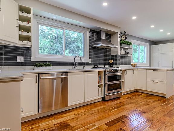 Luxury Living Meets Natural Serenity. Tucked away on one of Hamilton’s most sought-after streets, 63 Veevers Drive offers a rare blend of refined indoor living and extraordinary outdoor beauty. Backing onto the lush ravine along Red Hill Creek, this exceptional two-story home provides direct access to scenic trails and is just minutes from seven of Hamilton’s picturesque waterfalls. Conveniently located near the Red Hill Parkway, this home checks all of the boxes! Located in a highly desirable East Mountain neighbourhood near the Stoney Creek border, this meticulously updated home offers over 2500 sq ft of finished living space, including 6 bedrooms, spacious principal rooms, and elegant finishes throughout. The main floor welcomes you with hand-scraped acacia engineered hardwood, a bright and open family room, powder room, and convenient garage access. At the heart of the home is a stunning kitchen with quartz countertops, stainless steel appliances, and plenty of soft-close cabinetry—flowing into a generous dining room with sliding doors to your backyard oasis, complete with a shade pavilion and a family fire pit area. The main floor also includes a spacious family room and powder room. The upper level features four spacious bedrooms and a beautifully updated 4-piece bath. The lower level is ideal for multi-generational living or guests, with two additional bedrooms, a rec room, gym space, updated bathroom, and organized storage. The entire lot has been meticulously landscaped with a wide variety of low maintenance perennials that add pops of colour in all seasons. Updates you’ll appreciate: Roof (2024) New front windows (2022) Backyard concrete patio (2022) Central Vac Newer mechanicals A true sanctuary within the city—this home is a must-see for those who value luxury, space, and connection to the outdoors.