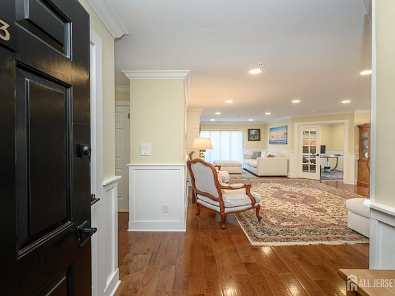 The Village at Convent Station in highly sought after Morristown premieres this lovely 2 Bed 2 Bath Condo with Master Suite, sure to impress! Beautifully maintained inside and out with plenty of modern upgrades all through, move-in-ready and waiting for you. Step in to find a spacious, light and bright open layout with state of the art renovations and high end finishes, complete with 4.5 inch solid hardwood flooring, recessed lighting, and elegant decorative molding. Cozy gas fireplace in the family room is perfect for the season, along with sliders that open to your own private balcony. Open dining area makes dinner parties a breeze. Sizable eat-in-kitchen offers new corian countertops, ample cabinet storage, and appliances like a sleek SS gas stove, fridge, dishwasher, microwave, and garbage disposal. Down the hall, find convenient in-unit laundry area with washer and dryer, the upgraded main full bath with extra large ceramic tiling, and 2 generous bedrooms, inc the blissful Master Suite. MBR boasts its own WIC and full ensuite bath with an accessible stall shower. Bonus den is very versatile, and makes a great home office or 3rd bedroom. Dedicated 6x12 storage area in the basement is an added bonus. Central air/forced heat, assigned parking, and a prime commuter location, just 1 mile to both the Morristown and Convent Train Stations, close to shopping, dining, parks, and major roads for a seamless commute. Don't miss out! This is a turn-key MUST SEE!