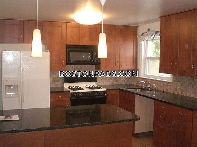 This single family is spacious and updated. You walk into a good sized living room with an ornamental fireplace and gleaming hardwood floors. You move on into the dining area and open kitchen with a breakfast bar. There is a dishwasher, disposal, gas stove, built in microwave and side by side fridge/freezer. There is plenty of storage space and room to work. If you keep moving back from here you enter a good sized family room which has the entrance to the master bedroom off of it. This allows you to have a formal living room and a family room to hang out in if you desire. The master has a half bath and the ornamental fireplace faces into this room as well. Going down the hall past the kitchen and you find two more good sized bedrooms with excellent closet space and a full bath that is tiled and modern. Going down to the basement you will find it fully finished with a ton of space to make a play room or another family room or just space to hang out in. You will also find another good sized bedroom with ample closet space and another full bath with a shower. There is also room for storage space and a laundry room with hook ups in the basement as well. Outside you have parking for four or five cars, a good sized yard and a nice deck to hang out on. This property has it all and is conveniently located to 95/128, Legacy Place, the Commuter rail and many other attractions and shopping experiences. Boston Pads is not responsible for any errors, omissions and change in price, prior sale, rent and withdrawal without notice. All information from sources reliable but not guaranteed. Photographs, videos, description and information about the properties reflect conditions at the time the information was obtained. We are pledged to this letter and spirit of U.S. policy for the achievement of equal housing opportunity throughout the Nation. We encourage and support an affirmative advertising and marketing program in which there are no barriers to obtaining housing because of race, color, religion, sex, handicap, familial status, or national origin.