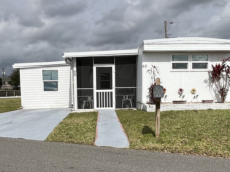 Enjoy Florida living at its best in your enclosed and A/C cooled Florida room. The Florida Room is tile; second bedroom has carpet and there is laminate flooring throughout remainder of the home. The roof was installed in 2022, tankless water heater in 2019 and the AC system in 2015. There is storage beyond your expectations with an extra shed at rear of home. The master is large enough for any size of furniture and has a wall of closets for your clothing storage needs. The laundry room is just outside your hallway door and fully enclosed so you can use your wash and dry area without ever having to step outside the home. This home is just pristine and so tastefully decorated and ready for you to call it your own!! Call for your showing today! Twin Palms has a vibrant lifestyle surrounded by a supportive community. Experience the joy of Florida living in a place where every day feels like a vacation. Enjoy Resort Style Leisure Living here in Twin Palms, called 'The Place To Be'. The Community has street-lights, security entrance gate, with key Fob entry, on site management and cameras for added security. Relax by the large, heated pool with Tiki Hut, firepit and BBQ grill. Play darts or shoot pool in the game room. Find a book and settle in for a good read or try one of our many puzzles. Enjoy the large community clubhouse complete with warming kitchen for those neighborhood dinner gatherings, parties, cards, music and holiday celebrations with your neighbors. Challenge your neighbors with a lively game of shuffleboard, cornhole, pickleball or a card tournament. Twin Palms is an Active 55 Adult community - the monthly Fee Package will include Land-lease, Water, Sewer, Trash, Property Taxes, Bulk Community Telecommunication Package (Spectrum Cable/Internet) and Use of Resort style Amenities for $1258.00. Community is pet friendly and gated(nightly) community. In addition, the Twin Palms Ownership group contributes a generous yearly amount to the community's Social Fund to promote an active lifestyle and social events. All listing information is reliable but not guaranteed and should be independently verified through personal and/or professional inspection.