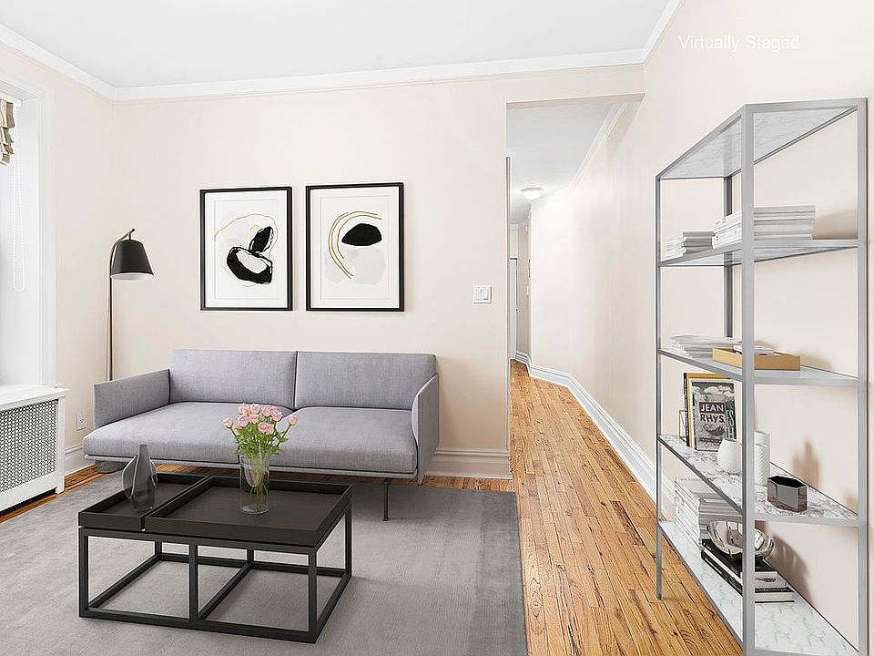 The master bedroom in the rear of the apartment comfortably fits a queen bed and the smaller bedroom can accommodate a single bed or sofa bed and is perfect for a home office and/or guest room. What this first-floor apartment lacks in views, it offers peace and quiet along with unlimited outdoor recreation with nearly 900 acres in park land with Central Park one block away and Morningside Park three blocks to the north. You will also enjoy the charming homes of the quaint Manhattan Avenue Historic district between 104th and 106th Streets and the community garden right on the same block.
