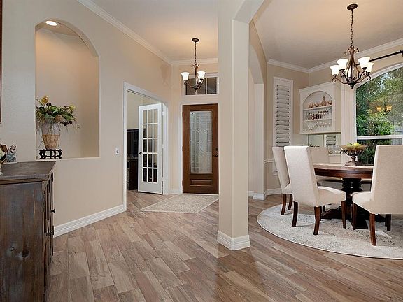 Completely remodeled one story home on a corner lot in Alden Bridge! 55+ COMMUNITY; Professionally landscaped front and back with landscape lighting, covered front porch, recent neutral interior paint throughout, all new carpet and wood-look tile flooring, replaced all windows with double paned Low-E, added crown moulding, wood shutters, remodeled kitchen and baths, and so much more! See full list. A gorgeous open concept island kitchen overlooks the breakfast room and den with gas log fireplace, wall of windows and built-ins; elegant formal dining and study; spacious master retreat and two secondary bedrooms; private, fenced yard features sparkling pool and spa with gazebo, lanai and wood deck.