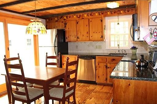 Reproduction Saltbox Colonial Loaded with Charm & Character! If you Like Pine Floors, Beams, Colonial Wainscoting and Built-ins then this one could be right for you! Features mostly Pine Floors throughout, Kitchen with Pine Cabinetry, GRANITE Counters, STAINLESS appliances and Sliders for tons of natural light, Beautiful Brick Fireplaced Family Room with Built-in Bookcases and Cabinetry, Access to covered Porch with Seasonal views of Lake Maspenock! Formal Living and Dining Rooms, Four Spacious Bedrooms including a Master with Fireplace (Has not been used), ****Finished 3rd Floor with a Play Room or Home Office - (2 rooms) Offering Cathedral Ceilings & Skylights + Half bath, ***Updates include a NEW Gas Heating System (changed from Oil) With New Central Air, Newer Roof, NEWER Marvin and Anderson Windows, Freshly Painted, Killer two car detached POST & BEAM Garage/Barn with Stairs to unfinished second floor (Would Make a Great In-Home Office), Tons of Parking - Great Commuting location!