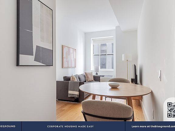 Feel at home wherever you choose to live with Blueground. Youll love this comfortable Financial District furnished two bedroom apartment with its modern decor, fully equipped kitchen, and exquisite living room. Ideally located, youre close to all the best that New York has to offer! (ID #NYC1619) The advertised rate of $6,960/month is the lowest available price, based on a 12 month(s) stay with a move-in date of May 1, 2028. Rates vary depending on the duration of stay, season, and other parameters. For exact pricing and additional pricing components, please visit our website and enter your desired move-in and move-out dates. The rate is applicable when billed upfront; it can be higher if billed in multiple payments. Brokers are welcome to reach out. Were you looking for an unfurnished lease? Try Blueground instead and upgrade from unfurnished to furnished living: - Furnished at rates comparable to unfurnished - No setup or furniture costs - save thousands - Move-in ready - save time, just bring your suitcase Designed with you in mind Gorgeous furniture,fully equipped kitchen,smart TV, and a premium wireless speaker are just a few of the amenities youll find inside this two bedroom apartment.Ideally located in New York, youll find a lot to love outside as well. When youre ready to relax, youll be happy to discover every Blueground bedroom comes with superior quality mattresses, luxury linens, and cozy towels. We handle everything so you can simply show up and start living.This apartment also offers in-apartment laundry. Sleeping arrangements - Queen Bed, 63in/160cm - Double Bed, 55in/140cm Amenities Building amenities unique to this two bedroom apartment include an on-site - Doorman - Dryer - Elevator - Game room - Washing machine - Lounge - Library - Media room - Pets allowed - Playroom - Rooftop BBQ Arrival and ongoing support The entire apartment is yours to enjoy! Throughout your stay, youll have access to our Client Experience team through the Blueground App. You can schedule additional cleanings, submit maintenance requests, and view our neighborhood recommendations with just a few taps. Well share all details upon confirmation of your stay. Ideally Located This furnished apartment is located in the Financial District, also known as FiDi. Home to Wall Street, One World Trade Center, the South Street Seaport, and Bowling Green it is a constant hub of activity. During the week the sidewalk is always bustling and the restaurants are filled with professionals. The glittering skyscrapers and well-known landmarks make this one of the citys most recognizable and historic neighborhoods. By subway, Times Square is about 20 minutes away. Other things to note Building amenities may have an extra cost. This Blueground apartment has flexible lease options, allowing you to book it for one month, a year, or more. Pets are welcome, though weight limits and breed restrictions apply and may incur fees. Brokes CYOF. We take great pride in ensuring every photo displayed is shot in our own units with our actual furnishings. That said, we regularly refresh our decor and furniture arrangement, which may differ from whats pictured.
