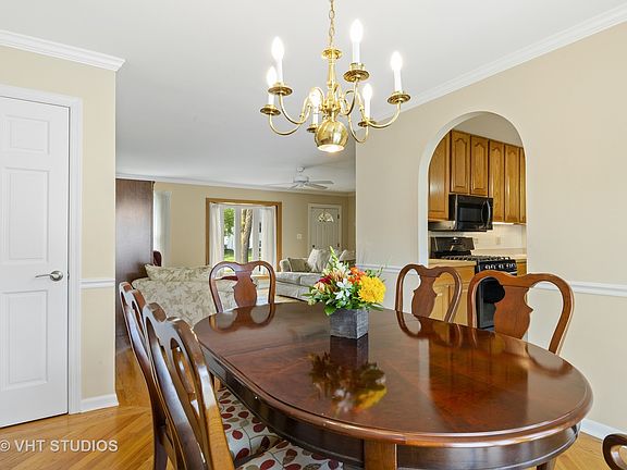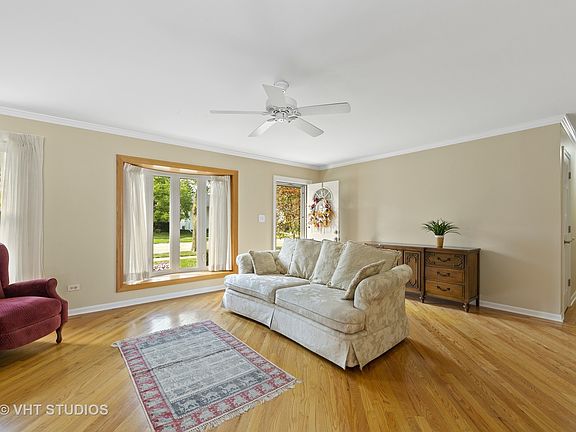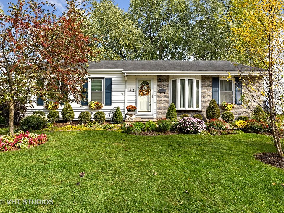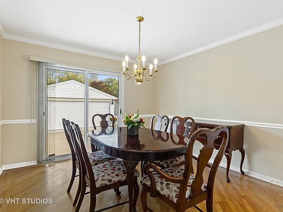 Charming Move-in Ready Wheeling Ranch! Gaze out of the beautiful bay window in the large Living Room with hardwood floors throughout. Adjoining Dining Room with sliding patio doors. Huge Eat-in Kitchen with Brand New Samsung Black Stainless Steel 'fingerprint resistant' appliances including a French 4-Door Refrigerator with FlexZone Drawer. Completely updated in 2020 Beautiful Marble Full Bath with Grohe overhead and hand-held shower heads, including grab bars, a heated floor and a new vanity with frameless LED lighted mirror. 1/2 bath attached to the Primary Bedroom with additional access from the common area. The large partially finished basement hosts the Maytag washer and dryer and plenty of unfinished storage area too. Expanded 2.5 car detached garage with new epoxy floor, cabinets and peg-board walls. Large storage shed for all the 'extras'. Perfect for the gardening enthusiast, Lush landscaping throughout the property. Fully fenced-in backyard with custom brick paver patio. Ideal location within walking distance to local library and parks. Close to new Wheeling Town Center and Metra Train!