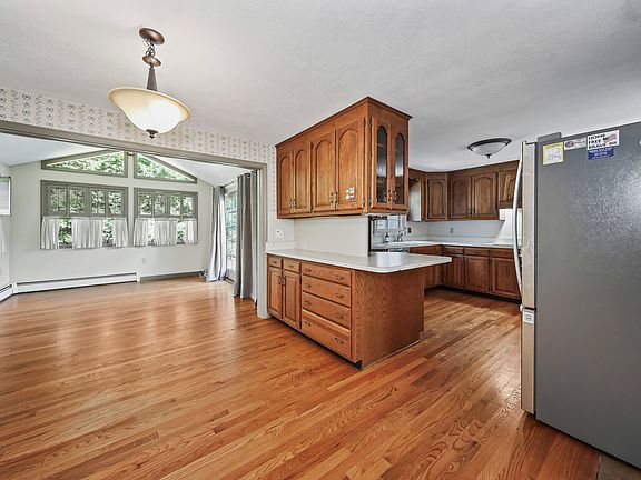 Slider to rear deckSprinkler systemCathedral ceilingHardwood floorsOpen floor planFloor-to-ceiling fireplaceFull kitchen with dinette
