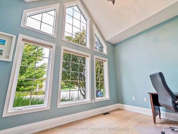 Quiet cul-de-sacMature lotBacking onto conservationSun-drenched south-facing backyardVaulted main-floor officeGas fireplaceFormal dining room