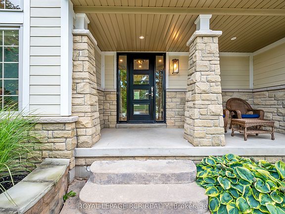 Tucked away within the quiet cul-de-sac of Credit Springs Estates, this Berkshire-built residence offers refined living on a mature lot backing onto conservation with a sun-drenched south-facing backyard. Inside the home, elevated design offers a vaulted main-floor office creating the perfect work-from-home retreat. At the same time, the living room, centred around a gas fireplace, flows seamlessly into the formal dining room overlooking the grounds. The beautifully updated eat-in kitchen is both stylish and functional, with a large island, stainless steel appliances, and a walkout to the raised deck accented with sleek glass railings before opening to the family room. Upstairs, the spacious primary suite overlooking the backyard is bathed in natural light and features a walk-in closet and a spectacularly updated five-piece ensuite with a freestanding tub, glass shower and double vanity. The second bedroom enjoys its own four-piece ensuite and walk-in closet, while bedrooms three and four share a convenient Jack & Jill bath with double vanity and shower. A large unspoiled walkout basement invites endless possibilities for additional living space, while the main floor is finished with a mud/laundry room with garage access, ensuring everyday convenience. Just minutes to shopping, restaurants, and schools in Orangevilles west end, with a playground right on the street. All this, less than an hour from Toronto.