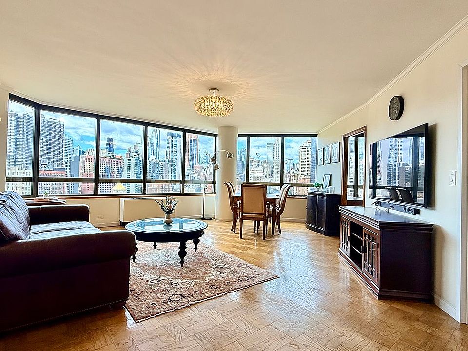 This beautifully laid-out two-bedroom, two-bathroom apartment features an expansive stretch of 6-foot windows in the living room, showcasing spectacular views of the Empire State Building, St. Vartan Park, and downtown Manhattan.