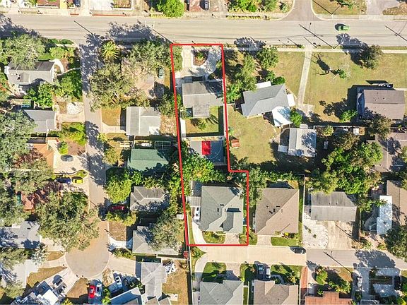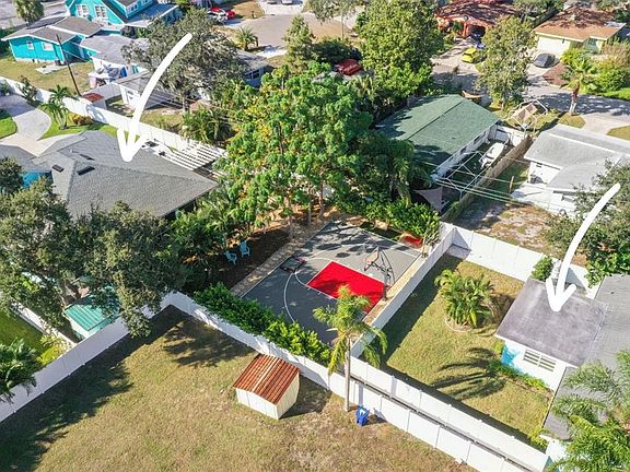 630 Athens Street & 637 Beltrees Street being sold together to make a truly One-of-a-Kind Dunedin Estate — Two Homes, Nearly Half an Acre, and a Private Basketball/Pickleball Court! Located just one block from the Toronto Blue Jays Spring Training Stadium, this exceptional Dunedin property combines luxury, versatility, and location on nearly half an acre of beautifully landscaped land with entrances from both Beltrees Street and Athens Street. The estate includes two separate homes, ample parking for boats and RVs, and your very own private basketball half-court that doubles as a full pickleball court. The front home at 637 Beltrees Street is a charming 2-bedroom, 1.5-bath residence with 1,090 heated square feet and a one-car garage. Recent updates include new flooring and fresh interior paint throughout, giving the home a bright, welcoming feel. Enjoy the Florida lifestyle with a screened-in lanai out front, a sunroom in the back, and a fully fenced yard for privacy. The half-circle driveway offers easy access, and the double gate on the side provides convenient parking for your boat, trailer, or RV. This home is perfect as a guest house, rental, or multi-generational living space. The main home at 630 Athens Street, built in 2020, is a stunning 5-bedroom, 3-bath residence offering 2,064 heated square feet. The home features hurricane-impact windows and doors, 9’4” ceilings with 10’ tray cutouts, recessed lighting, shiplap accents, and crown molding. The gourmet kitchen is designed for entertaining with granite countertops, 42” white shaker cabinets, a large island with breakfast bar, walk-in pantry, wine and coffee bar, and a formal dining area overlooking the waterfall and fish pond. The first floor features four bedrooms and two full baths, including the luxurious primary suite with dual walk-in closets, a spa-like bathroom with double sinks and a large shower, and pocketing sliders that open to a private screened lanai. Upstairs, a private suite includes a kitchenette, full bath, and a flexible space ideal for guests, an office, or a game room. The home also includes a tankless gas water heater, spray foam insulation, 3-zone A/C system, block and Hardie siding construction, and a 30-year shingle roof with hurricane straps. The oversized two-car garage features epoxy flooring and custom shelving for additional storage. Step outside into a backyard oasis surrounded by lush palm trees, fragrant jasmine, and a tranquil waterfall with a fish pond. Enjoy the large hot tub, grilling area, and paver patio, with pathways leading to a tree fort and a tiny home used as a storage shed or creative studio. There is more than enough room to install a large pool or even a lazy river! The property is zoned for up to three residential structures, offering future expansion or investment potential. Both homes are fully fenced, allowing for separation or combination into one large open estate. Not located in a flood zone and tucked away on a quiet dead-end street, yet just minutes from Downtown Dunedin, the Pinellas Trail, Edgewater Drive, Dunedin Bowling Lanes and the Dunedin Fresh Market, this rare estate offers the perfect blend of privacy and proximity to everything. It’s truly one of Dunedin’s most unique and versatile properties—ideal for multi-generational living, rental income, or your own private retreat.