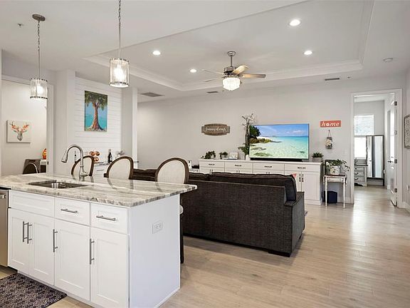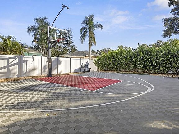 This exceptional 2020-built Dunedin home sits on .23 of an acre just one block from the Toronto Blue Jays Spring Training Stadium — walk to Spring Training games and enjoy Dunedin’s seasonal fireworks right from your backyard. Featuring 5 bedrooms, 3 baths, and 2,064 heated sq ft, the home showcases high-end construction with hurricane-impact windows and doors, 9’4” ceilings with tray accents up to 10’, crown molding, shiplap details, and a gourmet kitchen with granite counters, 42” shaker cabinets, a large island, walk-in pantry, wine/coffee bar, natural gas range, and upgraded stainless appliances. The first floor includes four bedrooms and two full baths, including a luxurious primary suite with dual walk-in closets, a spa-style bath, and pocket sliders leading to a private screened lanai. A natural gas tankless water heater and natural gas line already run to the backyard provide incredible energy efficiency and allow for an easy future outdoor kitchen installation. Upstairs, a private suite includes a kitchenette, full bath, and a flexible bonus area that can serve as a guest retreat, office, or a full game room. Outdoors, the property offers lush tropical landscaping, a waterfall with fish pond, hot tub, paver patio, grilling station, tree fort, and a charming “tiny home” perfect for storage or a creative studio. A private basketball half-court that doubles as a full pickleball court anchors the backyard, and there is plenty of space to add a large pool. A dedicated side driveway provides secure storage for a boat or RV. Located on a quiet dead-end street, not in a flood zone, and surrounded by other beautiful, well-kept homes, this estate delivers the true Dunedin lifestyle — golf-cart everywhere, enjoy great neighbors, and live minutes from Downtown Dunedin, Edgewater Drive, the Pinellas Trail, Dunedin Lanes, and local markets. A rare Dunedin offering combining privacy, recreation, and the best of coastal living.