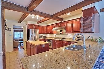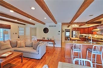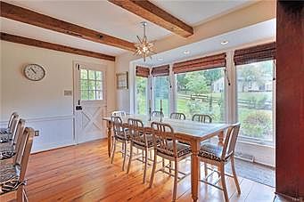 Each room of this 4 bedroom 3 1/2 bath home has all the unique and charming features that you could wish for in a quality-built 1960's North Bethlehem custom colonial. Wide plank pine flooring can be found throughout the first floor, along with custom built-ins, millwork walls, reclaimed barn wood ceiling beams, interior and exterior Dutch doors, a fireplace and energy-saving wood stove. A kitchen with upgraded stainless Jenn Air appliances - including a 6-burner gas cooktop, generous granite counters and peninsula seating for 4 to 6 people - is open to a sunny window-lined dining space and cozy family room. The master bedroom suite has an updated en-suite bathroom with loads of natural light and walk-in closet. Each bedroom has hardwood floors, and customized closets, while 2 have built-ins. The finished basement provides more recreation space with its own full bath. This half acre property with fence, pergola and utility shed is located in a highly desirable area. It's a must see!