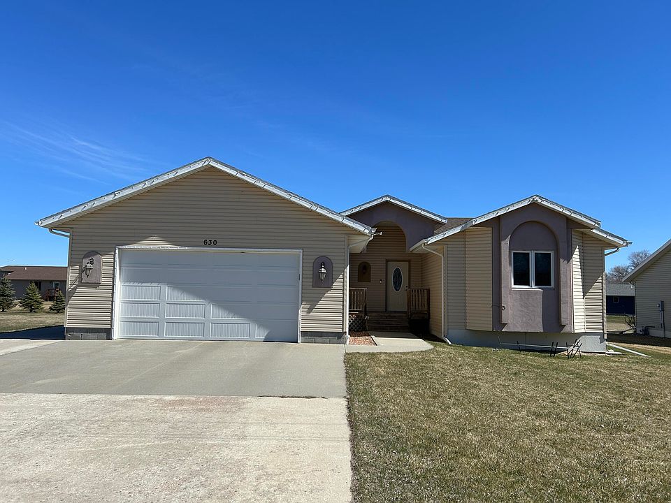 Beautiful open floor plan from living room, dining room & kitchen w/patio doors leading to large deck. 4 bedroom, 2 bathrooms, including large primary suite w/bathroom & walk-in closet. Basement has one non-legal additional bedroom, unfinished 3rd bathroom, laundry room & also main floor laundry! Attached double garage & a garden shed! Located in newer development on east side of town!