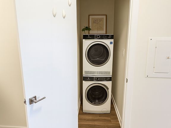 In-suite washer and dryerLarge windowsContemporary finishes