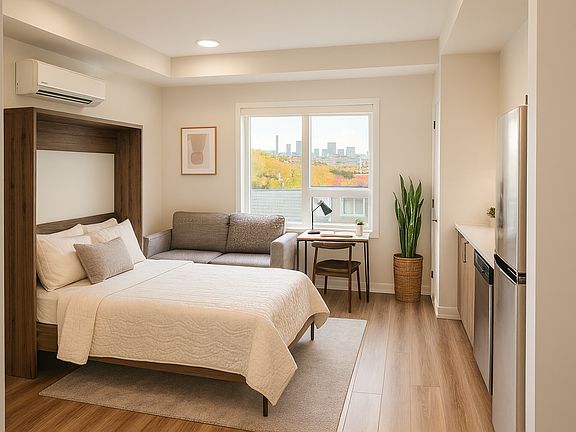 Bright, efficient, and boutique. This thoughtfully designed studio in a quiet 13-unit low-rise delivers true Westboro Village living without the premium price. The suite includes a space-saving Murphy bed and in-suite washer and dryer, giving you flexibility to furnish and style the space your way.