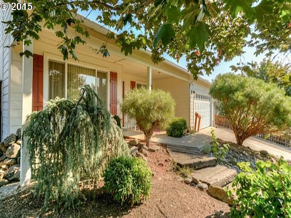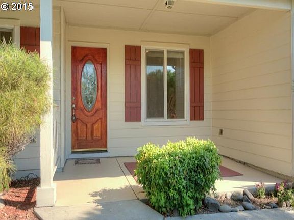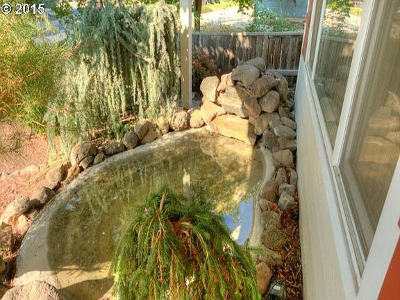 Darling home in Eagle Point w/a lovely front garden & beautiful water feature. Perfect starter home in quiet neighborhood w/1337 sq. ft. w/3 bdrms & 2 baths. Wonderfully open, spacious kitchen w/tons of white oak cabinets, French glass doors to the covered rear patio & ceramic tile flooring in kitchen. Living room has vaulted ceiling, room length plant shelf for cool decorative items & two large windows for a light, bright, homey feel.