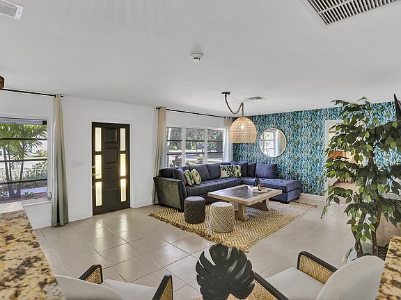 Stunning 3 Bed, 3 Bath Pool Home in Tropic Palms, East Delray Beach! This expansive home, sold fully furnished, is set on a fully fenced corner lot spanning over 11,000 SQFT, offering ample room to park an RV or boat (13-foot wide opening). Step inside to discover an inviting layout that includes a formal living room, a dining room with a wet bar, and a versatile Den/Florida room. Updated kitchen is a chef's dream, featuring granite countertops & SS appliances. 2020 Metal Roof, 2019 HVAC system & 2020 Water Heater!! The home also boasts shutters for all openings, elegant brick pavers in the front & back & covered back patio perfect for relaxing or entertaining. Fiber optic internet runs to the house. Conveniently located just west of US-1, only 2 miles from the beach and 3 miles from