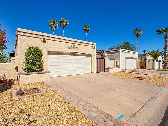 Charming single level home with 3 bedrooms & 2 full bathrooms. Full size 2 car garage with plenty of storage space. Enter home through Spanish style gated courtyard, good sized yard area with artificial grass (for easy maintenance) and expensive brick pavers on covered patio area. Inside the home is immaculate & well-maintained with brand new upgraded wood look laminate floors. Designer paint throughout and adorable kitchen with granite counters in designer colors. Bathrooms are fresh & with upgraded shower & vanity. This home is move in ready. A fantastic value for 1st time home buyers, investors or folks looking to downsize. Quiet street in Hohokam Hills. Close in location with easy access to freeways & shopping.