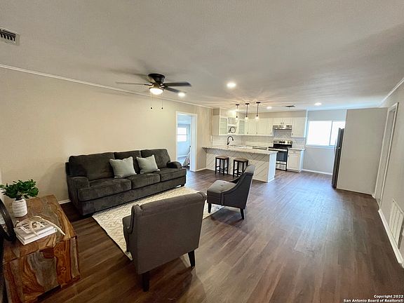 Completely renovated home, sitting on a cul-de-sac with FOUR bedrooms. This special home has been thoughtfully renovated top-to-bottom. Brand new flooring, kitchen, lighting, interior and exterior paint, hardware and bathroom tile. This family friendly floor plan has three bedrooms down the hall plus an additional fourth bedroom at the back. The bonus fourth room includes double closets and enough space to be a bedroom, office, guest room, play room or den. The extra deep two car garage allows for truck parking plus a work bench and lots of extra storage. At the back of the lot there is an additional driveway, two storage sheds and gate for access. The brick home sits behind a grove of mature oak trees. Esperanza, oleander and other blooming plants are abundant and blooming. It's a quick drive to all of your favorite stores, restaurants and Uvalde schools. Also a walkable area for those evening strolls. Simply move in and enjoy, it's ready for you!