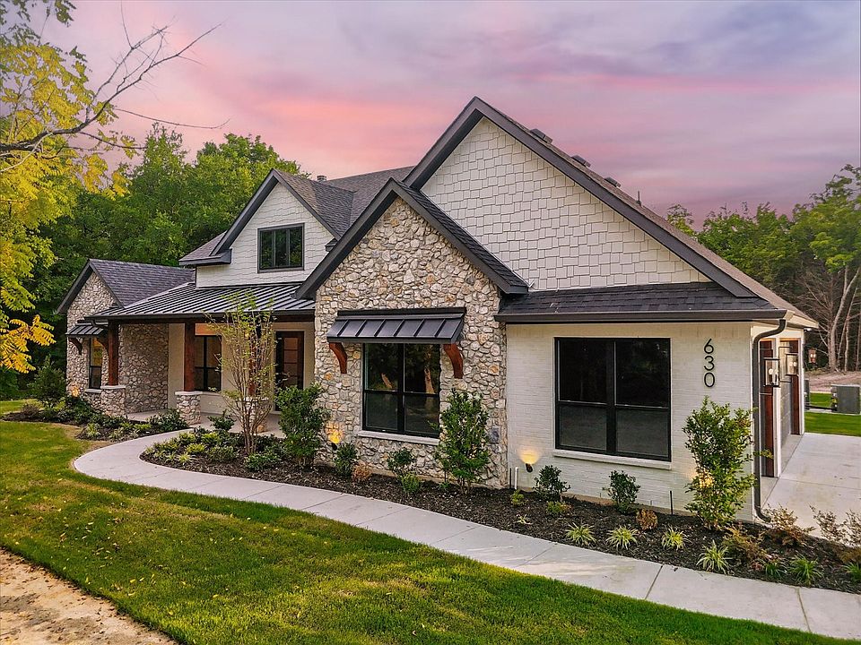 A gorgeous cobblestone accent welcomes you to the front elevation, along with an additional parking pad off the driveway. Step through the double front doors into an open layout filled with natural light. A dedicated office with double glass barn doors sits just off the entry. When you walk in, you’re greeted by a wall of windows that frame the beautiful tree-lined backyard—you won’t even need to turn the lights on!