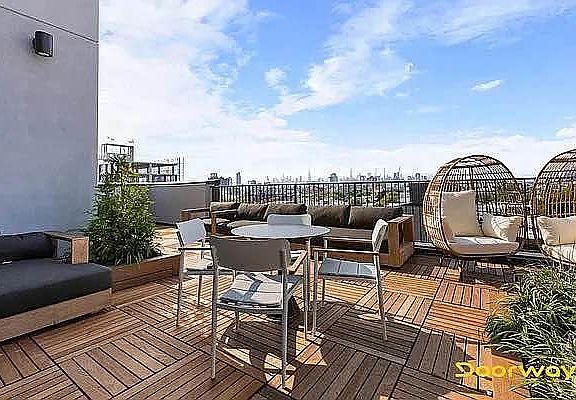 Modern finishesThoughtful layoutFurnished rooftop terraceSpacious bedroomsLarge windowsIn-unit laundrySkyline views