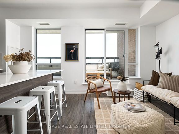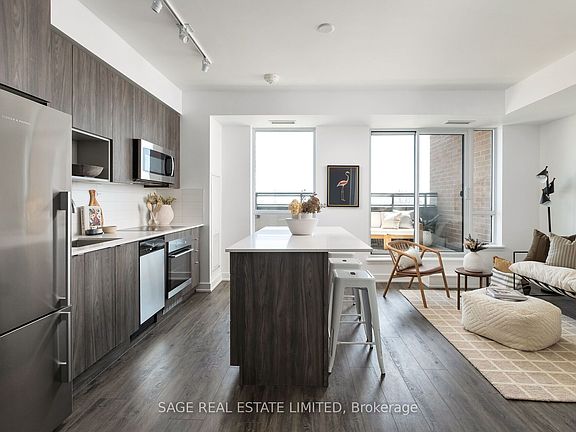 This isn't your typical condo. Its not just square footage, its breathing room real space to live, work, host, and unwind. Perched on the fifth floor with sweeping views of the city skyline and a peek at the lake, this rare 2-bedroom + den suite is a true standout in The Danforth. And yes, the den is a full-sized room that can easily double as a third bedroom, home office, or creative studio whatever your life needs right now. Inside, you'll find 918 square feet of thoughtful design that just makes sense. The open-concept living and dining areas offer natural flow, bathed in sunlight from huge windows. Whether you're entertaining friends or binge-watching something addictive, this space adapts to your lifestyle not the other way around. The kitchen? Modern, clean-lined, and ready for action, with sleek finishes and plenty of prep space. The primary bedroom feels like a retreat, with an ensuite and its own slice of the view. The second bedroom is generous in size and makes it ideal for families, roommates, or guests.And then theres the den flexible, private, and surprisingly spacious. But the showstopper? The balcony. It spans the entire length of the suite and gives you room to breathe, host, garden, or simply take in the sunrise with a quiet cup of coffee. You'll catch both lake views and the CN Tower a rare combo in the city. And then there's the location. Greenwood Station is literally downstairs, which means the city is yours without the traffic. The Danforth is one of Torontos most dynamic and authentic neighbourhoods walkable, diverse, and packed with personality. Weekend brunch, east-end breweries, top schools, leafy side streets - it's all right here. This suite is ideal for anyone who wants more space, better flow, and connection to a neighbourhood that actually feels like home. Perfect for upsizers, down-to-earth professionals, downsizers, or families who refuse to compromise on location and lifestyle.