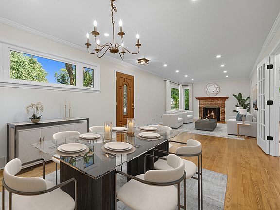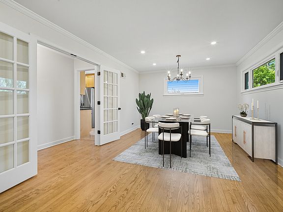 Charming Cape Cod Home Located in the Award-Winning Deerfield High School District in DESIRABLE Poet's Corner. Welcome to this beautifully maintained Cape Cod home featuring 4 spacious bedrooms and 2 nicely updated full bathrooms. The homes front entry is highlighted by an elegant brick paver walkway and matching stoop. The front entrance leads to the inviting living room with a cozy wood-burning fireplace, ideal for gathering with family and friends. Chefs will appreciate the updated eat-in kitchen with elegant granite countertops, stainless steel appliances and steps from the dining room providing the perfect space for memorable meals. Recently refinished hardwood floors extend from the living/dining area to the first-floor bedroom creating warmth and continuity. The convenient first-floor bedroom offers flexible living options: office space, or guest/multi-generational family bedroom. The luxurious first-floor bathroom showcases exquisite marble tile and a whirlpool tub designed to maintain water warm for the ultimate spa-like retreat. The upper level offers three bedrooms with a shared updated bathroom. All bedrooms have hardwood floors. A versatile built-in nook with glass shelving offers both storage and style. The finished basement, with brand new LVP flooring, has a mini kitchen offering the perfect recreational area for game and movie nights (wired for 4 speakers for a superior sound experience). There's space for a home office and an exercise room plus additional storage space. Laundry room with stackable washer and dryer. Discover the wonderful deck, steps from the kitchen, adorned with decorative lights, creating the perfect ambiance for dining al fresco or quiet relaxation. The fenced in yard is professionally landscaped with beautiful plantings. Enjoy the convenient irrigation system that keeps your outdoor space lush and beautiful with minimal effort. This thoughtfully designed home maximizes both comfort and functionality, inside and out. Close proximity to Kipling Elementary School, Kipling Park, Deerfield Public library, shops, dining, and the Metra for seamless commuting. This Cape Cod gem combines timeless architectural charm with modern updates, all in a highly desirable neighborhood that offers the perfect blend of suburban tranquility and urban convenience. Don't miss this opportunity to make this exceptional property your new home. Updates: freshly painted interior, refinished first floor hardwood floors, new LVP flooring in finished basement, refinished wood stairs to second floor and to basement, and new fixtures. Enjoy the smart lights in the living, dining and front porch, and smart thermostat.