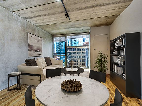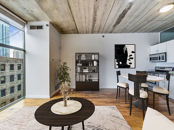 Deeded parking INCLUDED in price. Enjoy all that River North has to offer in this 1 bed/1 bath loft. Stainless steel appliances, hardwood floors, floor-to-ceiling windows, in unit laundry, 10 ft ceilings, concrete walls. No pet restrictions, no rental restrictions. Near public transit, dining, shopping and nightlife.