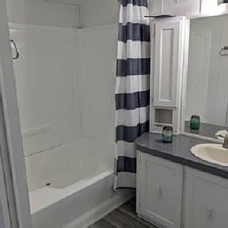Master bedroom leads into large in suite master bath with plenty of cabinet storage above below and behind. You will have plenty of space in the master bath.