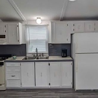 Kitchen has been remodeled with care and includes lots of large cabinet space, new sink and faucet. Also includes matching dinner table and 3 matching chairs.