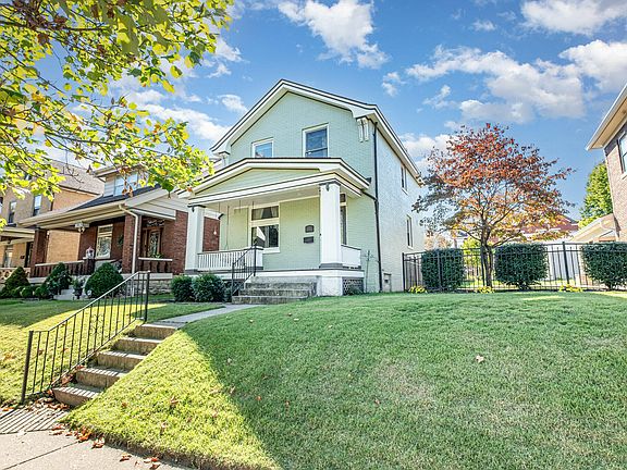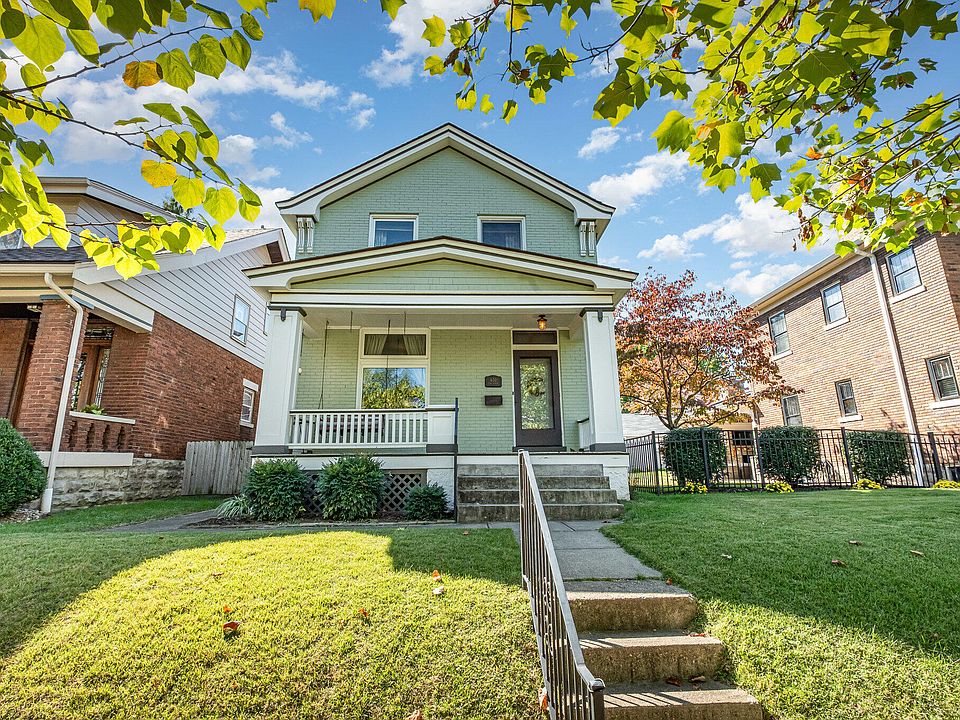 Enchanting American Foursquare style home in East Row Historic District. This 3 bed/1 bath home exudes old world charm while providing the most desirable updates. Hard to find 2- car detached garage with additional parking. Relax on the spacious front porch or in your personal backyard retreat, fenced-in and complete with patio, string lights, and an additional patio that is already wired and ready for a hot tub. Step inside and you'll find hardwood floors, high ceilings, living room with fireplace, dining room with stainless glass window, beautifully remodeled kitchen with stainless steel appliances, and walkout. Upstairs, the master bedroom includes 2 closets with built in features. The full bath has been tastefully updated and there are two additional bedrooms. This home also has a full unfinished basement with additional toilet and walkout. Make this gorgeous piece of history your home sweet home! Being sold ''AS IS''.