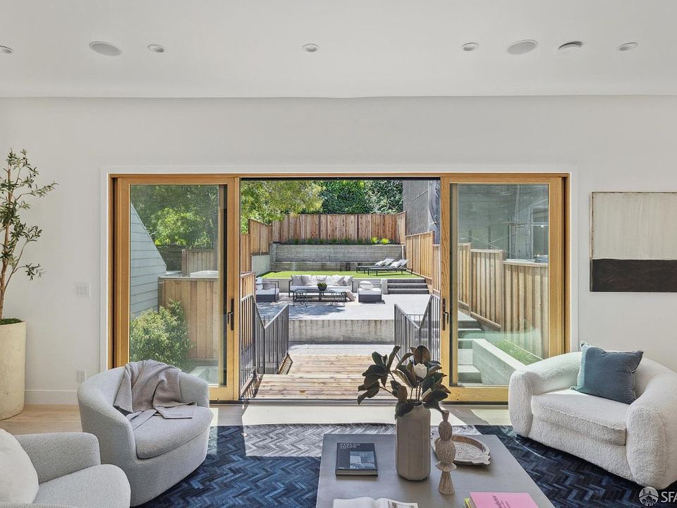 Experience modern luxury w/ this newly rebuilt 7-bed, 5.5-bath residence a block from Precita Park. Located on Bernal Heights north slope & completed in May 2025, this exceptional 2-unit compound offers 3 lvls of luxurious indoor-outdoor living, including over 1000 sqft of south-facing flat landscaped outdoor space.The main residence spans approx 3,600 sqft, boasting soaring ceilings & designer finishes throughout. The chef's kitchen, w/ its 14ft island, Italian terrazzo countertop & custom cabinetry, seamlessly flows into the dining area & family room. Expansive Marvin windows & doors flood the space w/ natural light & open onto the beautifully landscaped backyard. This lvl also includes a formal LR, a lounge w/ fireplace, a library & two stylish PR. Designed around a central media room, the upper flr is home to the 4 generously sized BD, 2 of them en-suite. All equipped w/ their own climate control unit, they share 3 BA, all w/ heated floors. The grand primary suite features a large den & a pvt patio, a spacious walk-in closet & an ensuite bathroom w/ a soaking tub & step-in shower. W/ independent street access, the lower lvl features a fully independent 2nd unit, spanning 1,367 sqft w/ 3 BA, 2 full BA w/ heated floors, a kitchen, laundry & backyard access.