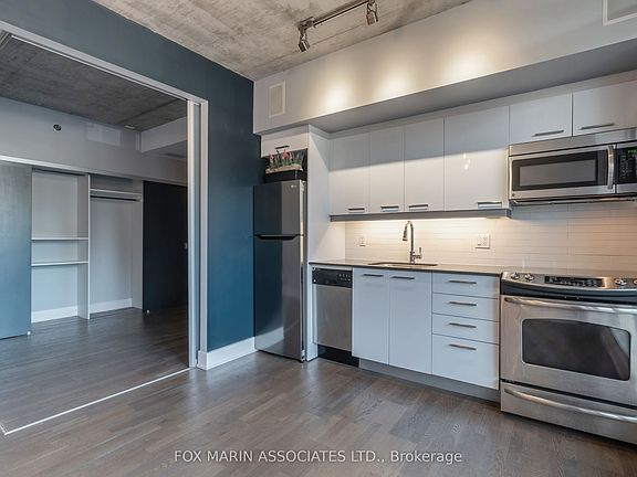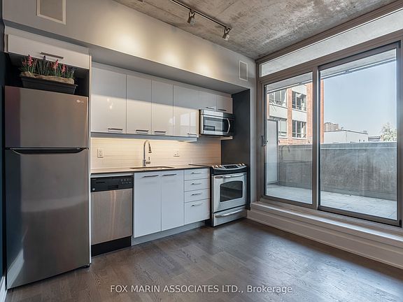 Rarely Available 1-Bedroom Loft At Sync Boutique Lofts In The Highly Sought-After South Riverside/Leslieville Community. This Bright 469 Sq. Ft. Suite Features An Open-Concept Layout With 9-Ft Exposed Concrete Ceilings, Floor-To-Ceiling Windows, And A Walkout To Your Large Private Terrace, Perfect For Morning Coffee Or Evening Relaxation. Enjoy The Best Of City Living With Local Favourites Like The Broadview Hotel, Black Bird Bakery, And Dark Horse Cafe Just Around The Corner, Along With The Don Valley Trail, Distillery District, And Corktown All Within Walking Distance, Plus Easy Access To The DVP And Public Transit Right At Your Doorstep. This Is Your Chance To Call One Of Torontos Most Lively And Beloved Neighbourhoods Home.