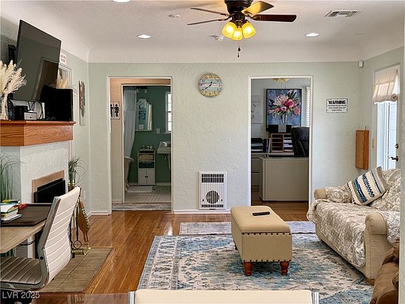 Own a piece of Downtown Las Vegas history! Just blocks from the Fremont Street Experience and Las Vegas Academy of the Arts, this fully renovated home features original hardwood floors, new plumbing, and a new A/C unit installed last year. Sitting on a double lot, it includes a 280 sq ft detached building—perfect for a studio, casita, or storage. Security screens and tempered glass add peace of mind. Whether you're looking for a home, office, or investment, this versatile property has it all. Don’t miss this rare opportunity sitting on Lawyers Row!