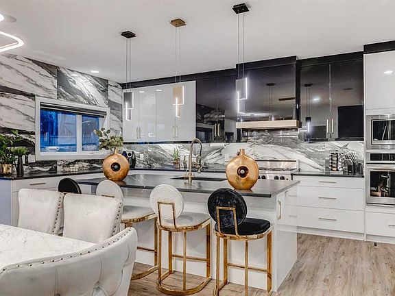 OPEN HOUSE Sunday, October 26th from 2:00–4:00 PM. EXQUISITELY REMODELED DESIGNER HOME offering 5 bedrooms, 3.5 baths, and around 4,200 SQ. FT. of developed living space on a RARE 8,500 SQ. FT. PIE LOT in sought-after Rocky Ridge community. A dramatic entry with gold-accent columns and custom wall paneling opens to a stunning living room featuring a floor-to-ceiling slab fireplace, expansive windows, and MOTORIZED BLINDS. The chef’s kitchen boasts CUSTOM CABINETRY, GRANITE COUNTERS, HIGH-END APPLIANCES, and a walk-through pantry leading to the OVERSIZED HEATED GARAGE. The main floor also includes a private office and two elegant dining areas. Upstairs, a vaulted bonus room captures MOUNTAIN VIEWS. The primary suite offers a SPA-INSPIRED ENSUITE and CUSTOM BUILT-IN WALK-IN CLOSET. Three additional bedrooms include built-in beds, including a unique double-bed design. The fully developed basement showcases an IMPRESSIVE SECONDARY SUITE (ILLEGAL) with FULL KITCHEN, spacious living area, luxury bath, and custom walk-in closet – ideal for MULTI-GENERATIONAL LIVING OR INCOME POTENTIAL. Additional features include BUILT-IN SPEAKERS, IN-FLOOR HEATING, A/C, SOLAR-CHARGED SMART BLINDS, stair sensor lighting, central vacuum, SMART TOILETS, new water tank, and water filtration system. Seller willing to negotiate furnishings, offering the opportunity to purchase the home FULLY FURNISHED FOR A MOVE-IN-READY EXPERIENCE. Enjoy EXCLUSIVE ACCESS TO ROCKY RIDGE RANCH AMENITIES – canoeing, kayaking, rowboats, tennis, basketball, pickleball, splash park, playground, clubhouse rental, skating, fitness classes, and community events. A ONE-OF-A-KIND DESIGNER HOME that blends TIMELESS EUROPEAN-STYLE LUXURY with MODERN CONVENIENCE in a premier NW location.