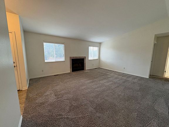 Front entry opens up into an oversized living room that features a wood-burning fireplace. The kitchen and dining area flow into each other and are flooded with natural light from the sliding glass doors that lead to the back patio. The kitchen has granite countertops and stainless steel appliances. The primary bedroom has a large walk in closet, with an ensuite bath and sliding glass doors for a private entry onto the back patio. Washer and dryer hook ups and a 2 car garage complete the unit. Convenient to shopping and Ft. Carson. No smoking, no grow.