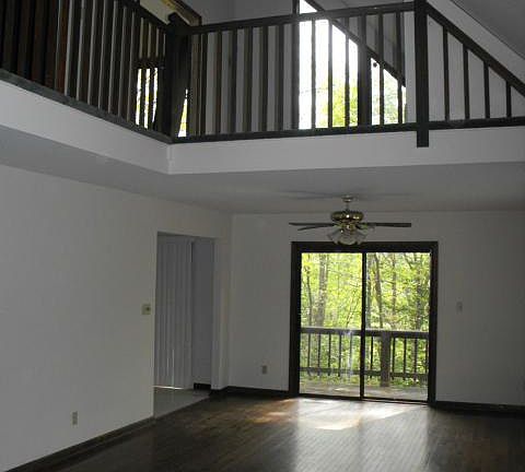 This home is surrounded by trees for privacy. With an open floor plan with soaring ceilings. Three large bedrooms. Large kitchen that opens onto the wrap around deck. The master bedroom opens onto an upper deck with views of the lake The basement has 10 foot ceilings rough in for a full bath ready to finish into a family room and or bedrooms. Large garage with room for a work shop. Paved driveway