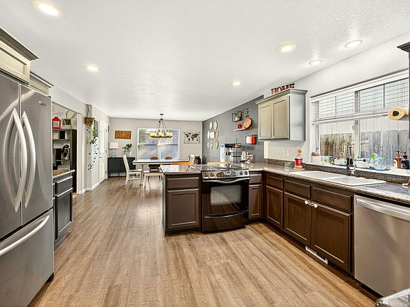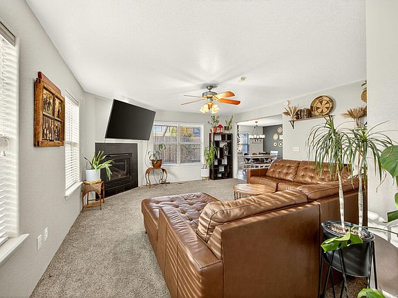 This wonderful 2,266 sq. ft. home offers 3 bedrooms and 2.5 baths. The kitchen features granite slab countertops, a breakfast bar, and ample storage. A gas fireplace adds warmth to the front room, and laminate flooring extends through the kitchen, dining area, laundry room, and entry. The spacious primary bedroom includes coffered ceilings, dual closets, a dual vanity, and a walk-in shower. The second level provides a large bonus/flex space with abundant natural light for a variety of uses. Additional features include a separate indoor laundry room and an attached 2-car garage. The backyard offers a covered patio, hot-tub hookups, and a sprinkler system in both the front and back yards. Located just five miles from historic Jacksonville and within a few short miles of grocery stores, restaurants, hardware, shopping, Rogue Recreation Center, and Logos Charter School.