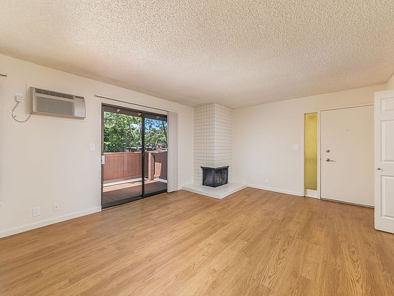 NEW LAMINATE WOOD FLOORS, UPDATED CABINETS, NEW CARPET, Huge closets, private patio/deck, electric heater, wall unit A/C, cozy wood burning fireplace, assigned covered parking and plenty of guest parking.