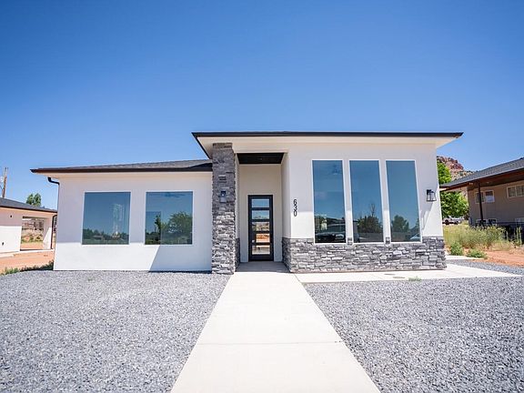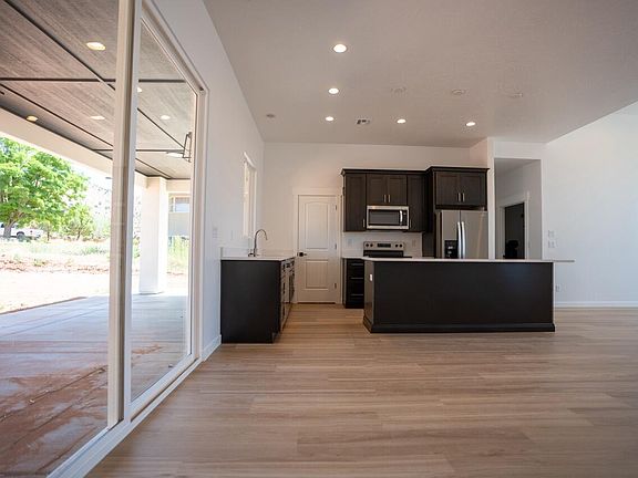 Imagine yourself living in this beautiful newly built home in the heart of Hildale! This modern, single-family home is move in ready and features an open floor plan with plenty of living space. LVP flooring throughout the main living areas and carpet in the bedrooms. Quartz countertops and dark cabinets are throughout the house, giving it that modern touch. Kitchen has stainless steel appliances, a large walk-in pantry and a spacious laundry room around the corner. Primary bedroom features 2 large windows to allow plenty of sunlight in as well as a large walk in closet and a tiled shower. There is a large covered patio outback, and lots of yard space. Home is situated on .25 acre and is in a fantastic location, surrounded by red rocks and views. Schedule your showing today! One of two New Construction and nearly identical homes located by each other.