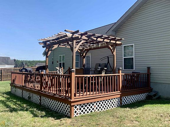 Beautifully maintained, better than new home on over an acre of land! A dramatic large foyer entry inviting you into this home. Large fenced backyard-perfect for pets lounging and entertaining. Beautiful hardwoods throughout. Walk in Owners Suite Closet. Open-concept kitchen/living area. Eat-in breakfast area. Formal Dining Room which can be a 4th bedroom or flex space. Large pantry and over-sized laundry room with folding table. Relax out back on the deck with pergola. This Home has access to two ponds within subdivision.