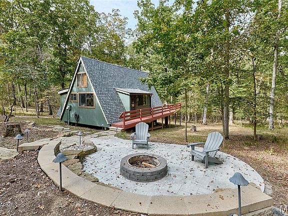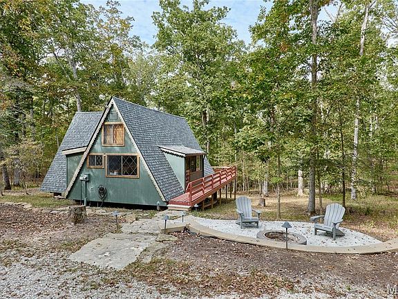 Escape to your own secluded wooded retreat! This completely remodeled A-frame cabin offers 1,200+ square feet of comfortable living space on 3 peaceful acres within the sought-after Innsbrook Resort Community. Currently operating as a successful Airbnb with proven income generation, this property is an excellent investment opportunity or personal getaway. A stone pathway leads you to the home, nestled in a picturesque wooded setting and featuring charming woodwork and a large deck to take in the views. Inside, the bright living and dining room are bathed in natural light from the two-story wall of windows. You'll love the stone fireplace, wood beams and ceiling, view into the upstairs loft area, and stylish lighting. The updated kitchen features butcher-block counters, a beverage cooler, newer flooring, and stainless steel stove. The primary bedroom has room for a king-size bed, and the bathroom has a step-in shower, shiplap detail, raised bowl sink, and storage space. Upstairs, you'll find a spacious loft area and additional bedroom. The home comfortably accommodates multiple guests with flexible sleeping arrangements throughout. Outside, enjoy a large deck perfect for entertaining, along with a firepit area for evening gatherings. The property overlooks private acreage and creeks, providing a chance to experience the beauty of your natural surroundings firsthand. You'll have peace of mind with the roof, HVAC, water heater, plumbing, and electric all updated within the last 2-3 years. As part of Innsbrook Resort, residents enjoy access to an impressive array of amenities including an 18-hole golf course, Charrette Creek Commons recreational complex with pool and lazy river, fitness center, nature hiking trails, tennis and pickleball courts, beaches and swim docks, horseback riding facilities, clubhouse restaurant and bar, and more. You'll be just moments from St. Gallen Lake and beach as well as the boat ramp on Alpine Lake.