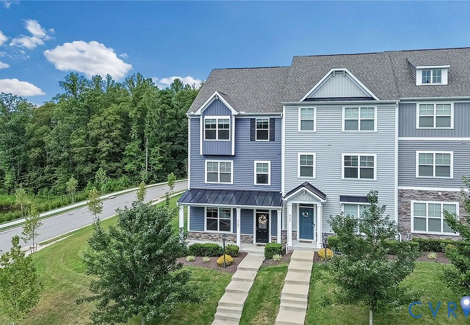 Welcome to this beautiful 3-story townhome in the highly desirable Wynwood at FoxCreek community! The first floor offers a versatile flex space with a half bath, wood flooring, and access to the 2-car garage. Elegant hardwood stairs lead to the second floor, where you’ll find another half bath, formal dining room, and a stunning like-new kitchen featuring a large island, granite counters, and stainless steel appliances. The kitchen opens to a spacious living room with wood flooring throughout and access to a large deck—perfect for relaxing or entertaining. The third floor boasts a spacious primary suite with a tray ceiling, walk-in closet, and a luxurious primary bath with a large walk-in shower. Two additional generously sized bedrooms, a full bath, and a laundry room complete the upper level. Enjoy resort-style neighborhood amenities including a clubhouse, boardroom, fitness center, tennis courts, indoor and outdoor pools, splash pad, parks, playgrounds, and scenic walking trails.