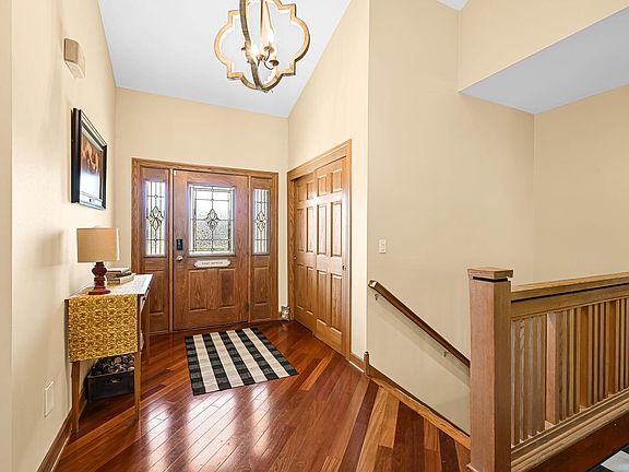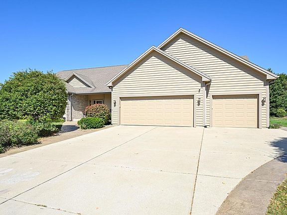 Find a perfect blend of luxury and functionality in this sprawling ranch home! Car enthusiasts/hobbyists will delight in the 5-car garage. The roomy open-concept great room welcomes with cathedral ceilings, fireplace, & adjoining wood floors. The chef-inspired, charming kitchen features an island, granite counters, SS appliances, and custom wood cabinets, adjacent to a spacious dinette. Dining room with a serving counter completes the ideal layout for gatherings. Main floor hosts a serene master suite w/ an updated bath and 2 add'l bedrooms. The finished LL is an incredible 1,600 sq ft of daylight filled space w/family room, 2nd fireplace, bedroom, office, exercise room and a workshop with garage access. Lovely yard w/ stamped concrete patio, mature pines, sprinkler system. Nearby park.