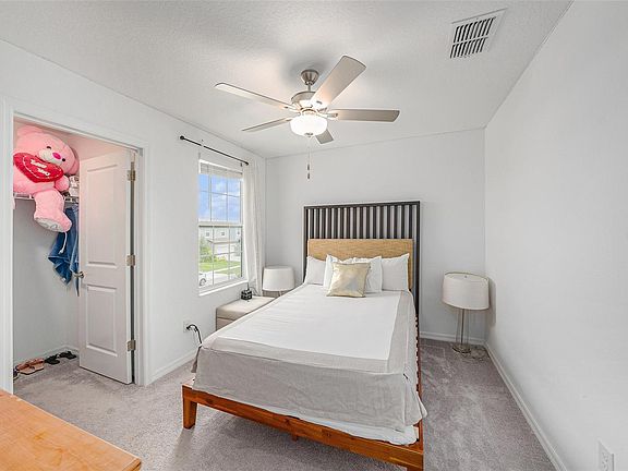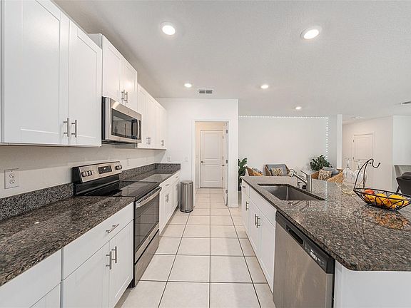 Welcome to this beautifully maintained two-story home in the heart of Zephyrhills. A 2023 build, offering over 2,200 sq ft of living space, 5 bedrooms, 2.5 bathrooms, and a 2-car garage. Located in the sought-after community, Abbot Square, with a resort-style pool, playground, and fitness center, this home has everything you need for comfortable Florida living. The open-concept first floor features a flowing kitchen, dining, and living room combo, perfect for entertaining. The kitchen is equipped with stainless steel appliances, granite countertops, a center island for prep and casual meals, and a walk-in pantry for added storage. A laundry room is conveniently located just off the kitchen, and a half bath completes the first floor. Upstairs, you'll find all five bedrooms and a spacious loft/family room, ideal for a second living area or playroom. The primary suite offers a peaceful retreat with a large walk-in closet, double sink vanity, and a tiled walk-in shower. Additional bedrooms are nicely sized, with one featuring its own walk-in closet, and all share a full bath with a double vanity and shower/tub combo. Step outside to a spacious backyard, perfect for grilling, playing, or soaking up the Florida sun. Located near zoned schools, parks, shopping centers, and dining options - this home blends space, style, and convenience in a growing area. Don't miss your chance to see this fantastic home - schedule your private tour today!