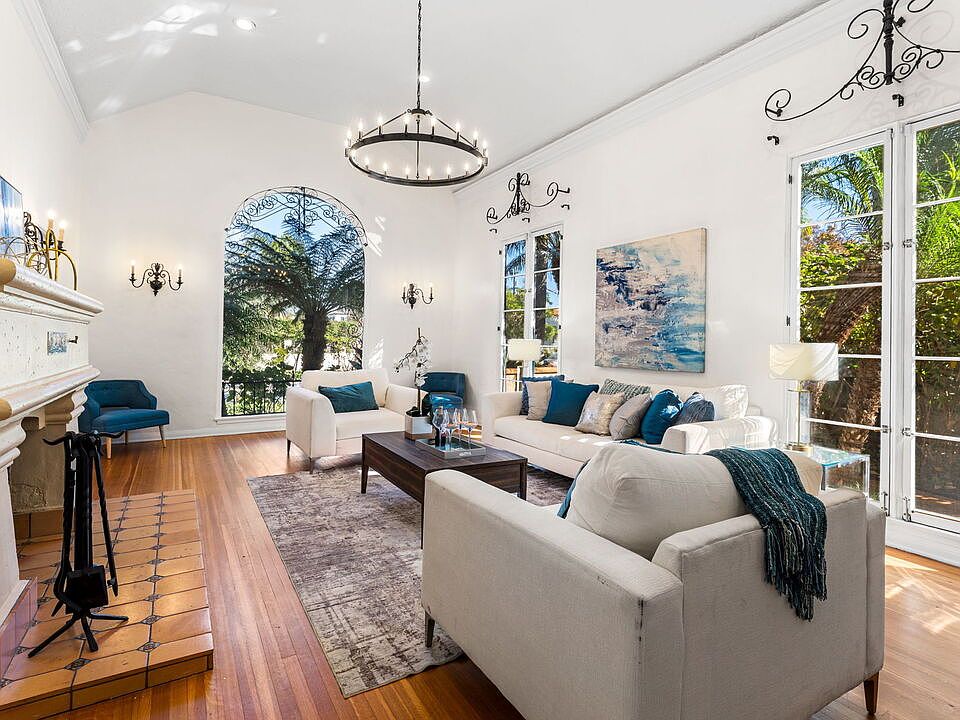 Welcome to 6300 Drexel! An extraordinary Spanish-style treasure nestled in the heart of the sought-after Beverly Grove. This elegant residence offers 4 spacious bedrooms and 4 beautifully appointed bathrooms, highlighted by dramatic soaring ceilings and streams of natural sunlight pouring in through tall picture windows and thoughtfully placed skylights. Step inside to discover timeless architectural character paired with modern comforts, including two inviting fireplaces and a dedicated library perfect for quiet work or relaxation. The expansive gourmet kitchen is a chef's delight, equipped with a 6-burner Viking range, sleek stainless-steel appliances, and generous storage. Efficiency is top-tier, thanks to dual tankless water heaters and a solar panel system, while a separately metered ADU offers incredible potential for guests, rental income, or creative studio space. Start your mornings beneath a romantic domed breakfast room, then unwind in the living room, framed by a stunning domed rotunda ceiling and picturesque garden views. Outdoors, an enchanting and thoughtfully landscaped yard awaits, complete with striking palm trees, a charming fountain centerpiece, and multiple areas to gather, entertain, or simply enjoy nature. The backyard is fully prepared for alfresco living with a built-in gas grill and pergola shade cover. Perfectly positioned within walking distance to The Grove and moments from the West Hollywood, Beverly Hills, and Century City and , this home delivers the ideal blend of privacy, convenience, and architectural charm. A rare offering in an iconic neighborhood your Spanish dream home awaits. A must-see!