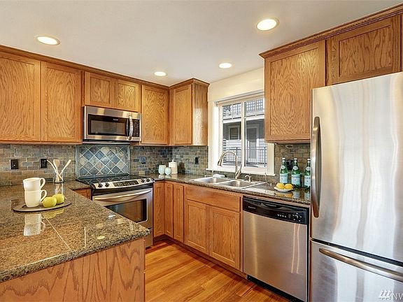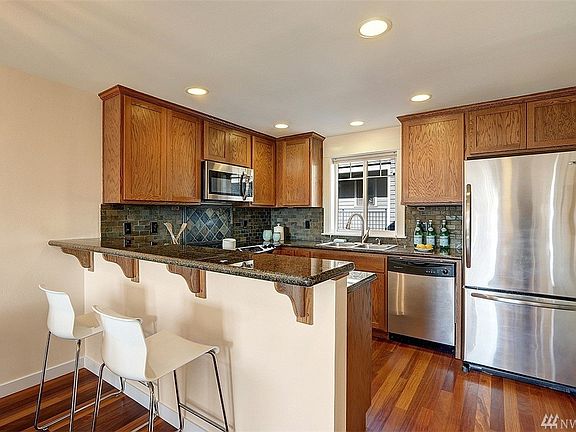 Craftsmen style townhome walkable to all that West Seattle has to offer. Freshly painted, hardwood floors, & new carpet. Open floor plan, drenched in western light with peek views of the sound. Office/bedroom at entry level with two more bedrooms up. Perfect setup for working from home. Kitchen with quartz counter tops, ss appliances. Two decks & patio with peek Sound and mountain views. One car garage with lots of additional storage. New W & D. Biking, transit options are excellent.